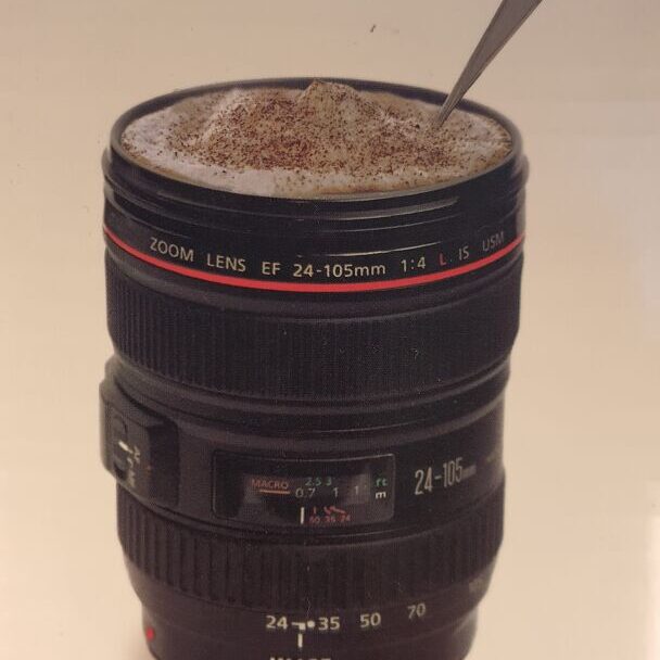 Diesen Kaffeebecher habe ich zu Weihnachten 2024 von meiner Frau geschenkt bekommen. Er ist eine Abbildung von meinem aktuellen 24-105 f4L RF von Canon. ziemlich schön diese Nachbildung, oder?
