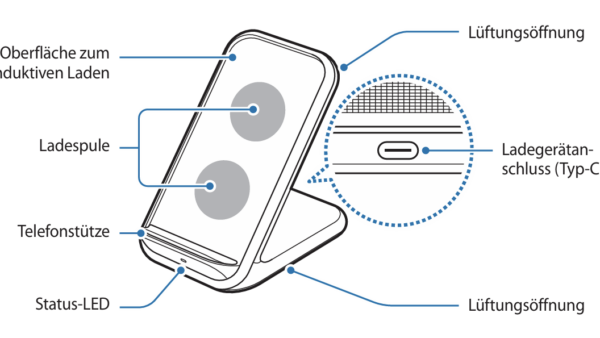 Samsung verkauft aktuell – abgesehen vom magnetischen Wits Wireless Magnetischen 3-in-1 Charger, der für die S25-Serie gedacht ist – keine weiteren Ladestationen, in denen man das Smartphone aufrecht hineinstellen kann.