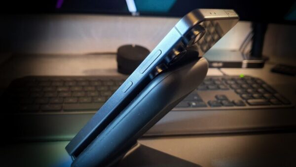 Ich mag es nicht, wenn solch ein großes Smartphone flach auf einer Ladefläche liegt. Ich verwende auch einen Akku mit induktiver Ladefläche und weiß, dass es nicht richtig lädt, wenn es nicht korrekt aufliegt oder der Ladevorgang unterbrochen wird, wenn man dagegen stößt. Daher bevorzuge ich eine Ladestation, in der man das Smartphone aufrecht hineinstellen kann – so hat man es auch besser im Blick.