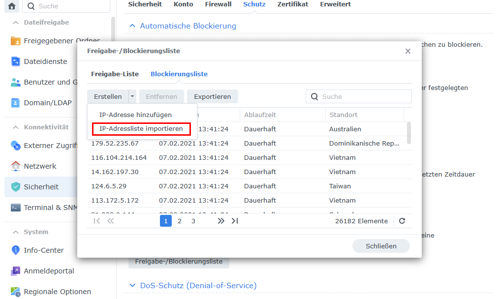 Du kannst deinen NAS-Server zwar nicht 100 % vor Angreifern aus dem Internet schützen, doch etwas entgegenwirken kannst du schon. In diesem Beitrag zeige ich dir, wie du die automatische Blockierung aktivierst und die IP-Blacklist importierst.