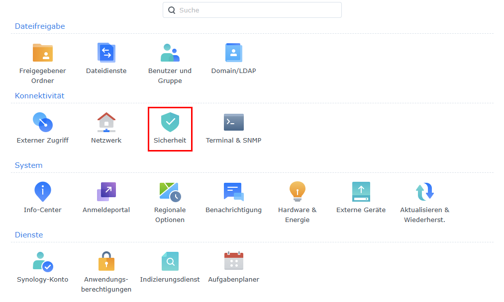 Um in die Einstellungen zu gelangen, öffnest du die Systemsteuerung und klickst auf „Sicherheit“.
