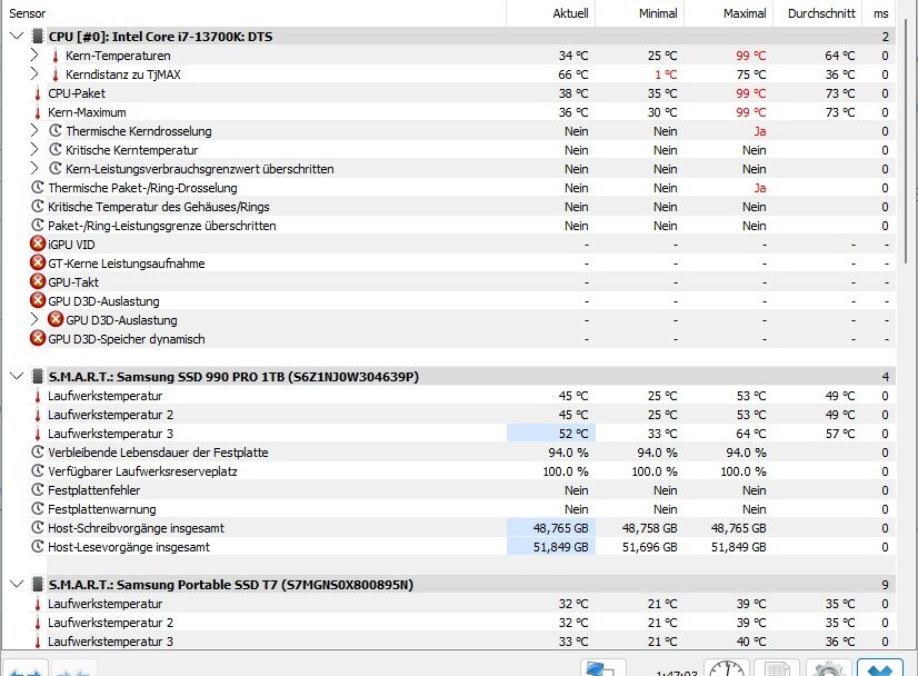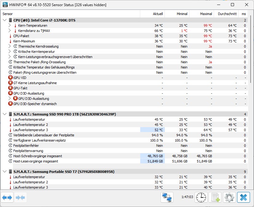 Du fragst dich bestimmt, wie ich auf dieses Thema gekommen bin, oder? Es ist ganz einfach: Ich habe meinen Systemstatus gerne im Überblick und lasse im Hintergrund HWiNFO laufen. Das ist ein kleines Tool, das jeden Temperatursensor deines Systems ausliest, besonders interessant für Gamer, die eine Wasserkühlung haben. Egal welches Bauteil einen Temperatursensor hat, er wird ausgelesen, und das kann sehr nützlich für ein sauberes Setup sein.